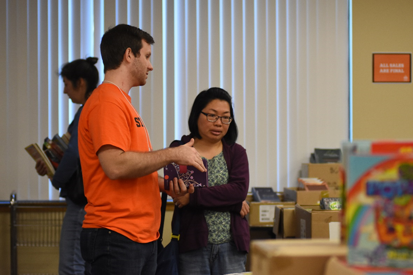Tyndale employees also enjoyed the warehouse sale by connecting people to titles, digging through piles of hurt Bibles to find the perfect choice and “competing” with one another to see what they could sell. “My favorite part of the warehouse sale was to see Tyndale’s people really rally together and reach out to the community to further our mission to ‘minister to the spiritual needs of people primarily through literature,’” said Heather Alred. “Each person came away with something whether it was customer or employee.”